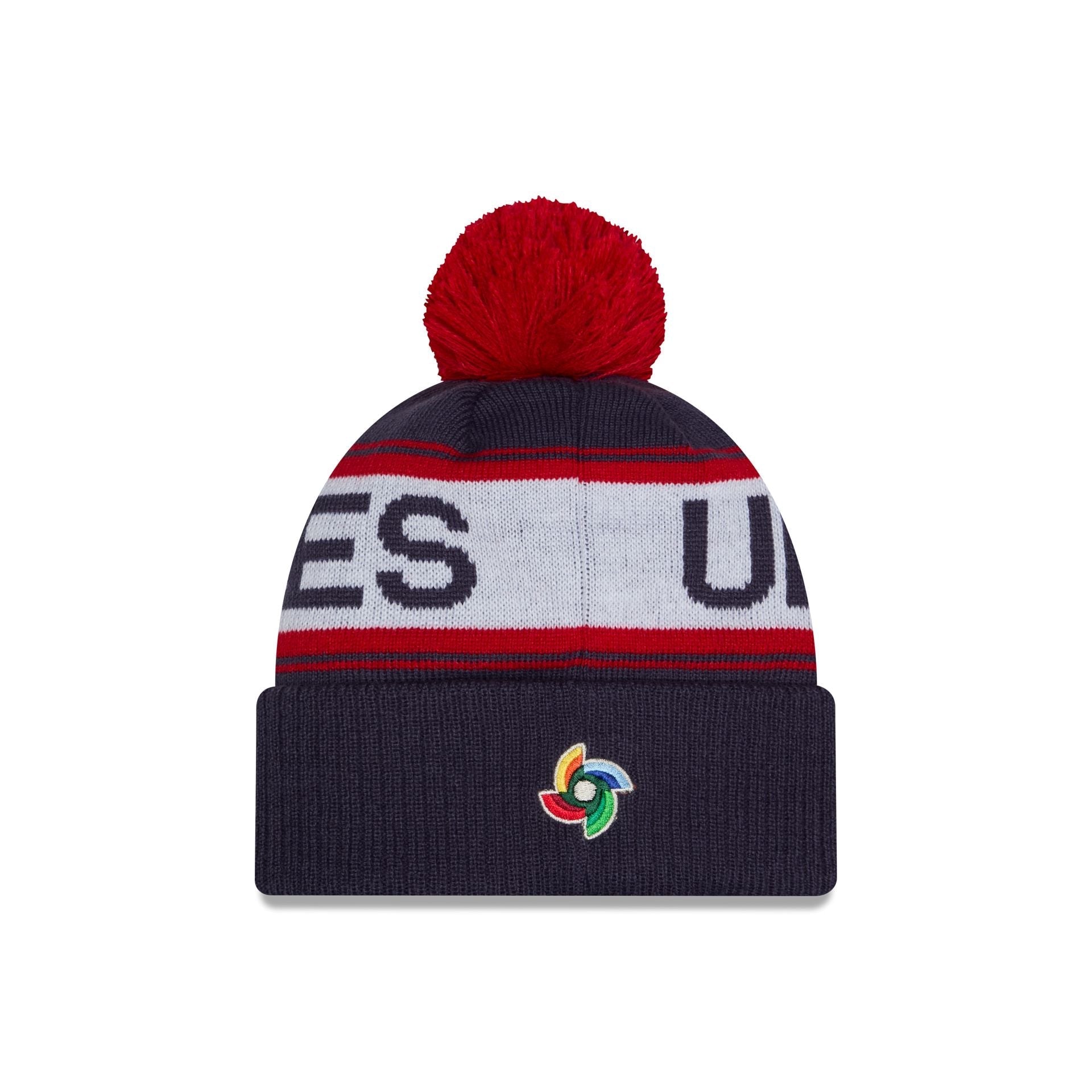 Wear what the players wear with the official on-field cap of the 2026 World Baseball Classic! The 2026 World Baseball Classic USA Pom Knit features an embroidered USA logo at the front with a matching team flag at the right-wear side. Additional details include World Baseball Classic logo at the rear with a team wordmark at the crown and a one-time removable pom.