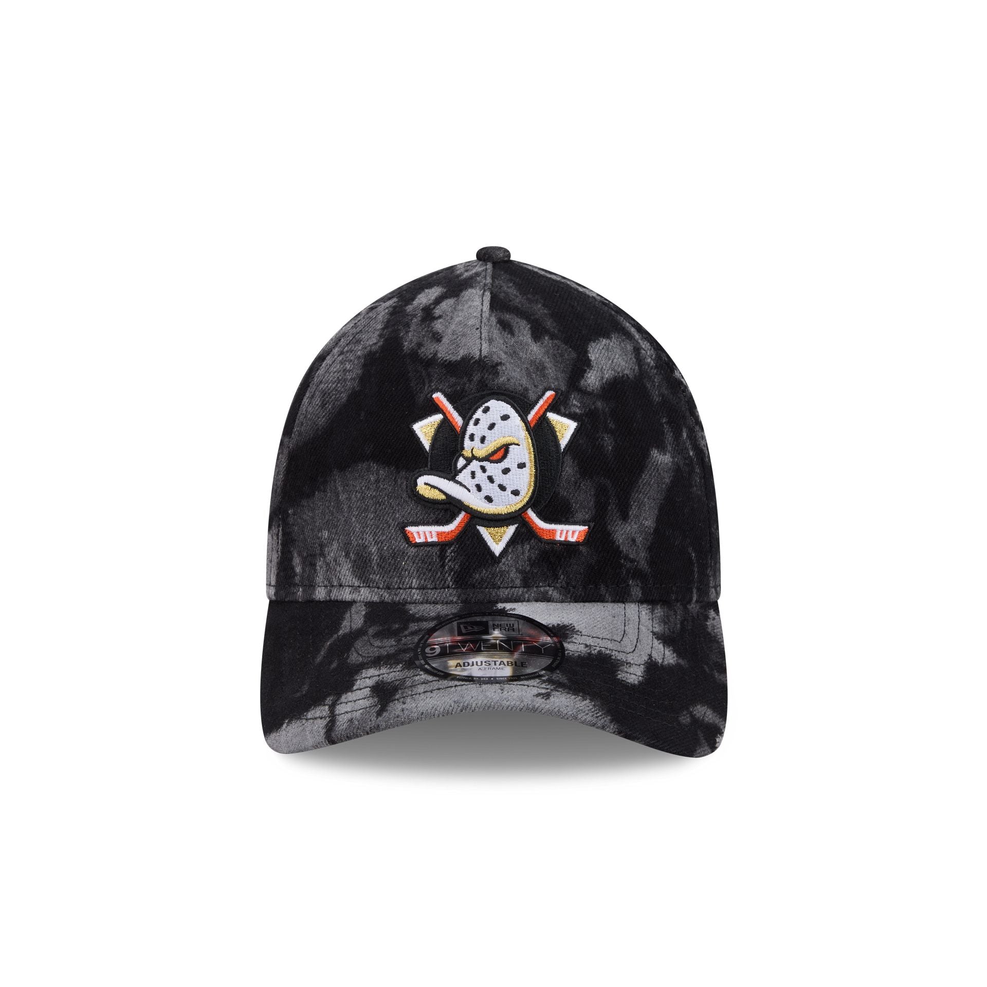 The Anaheim Ducks Bleached Denim 9TWENTY A-Frame Adjustable Cap features an embroidered Ducks logo at the front panels with a bleached denim fabrication throughout and an adjustable D-Ring closure at the rear.