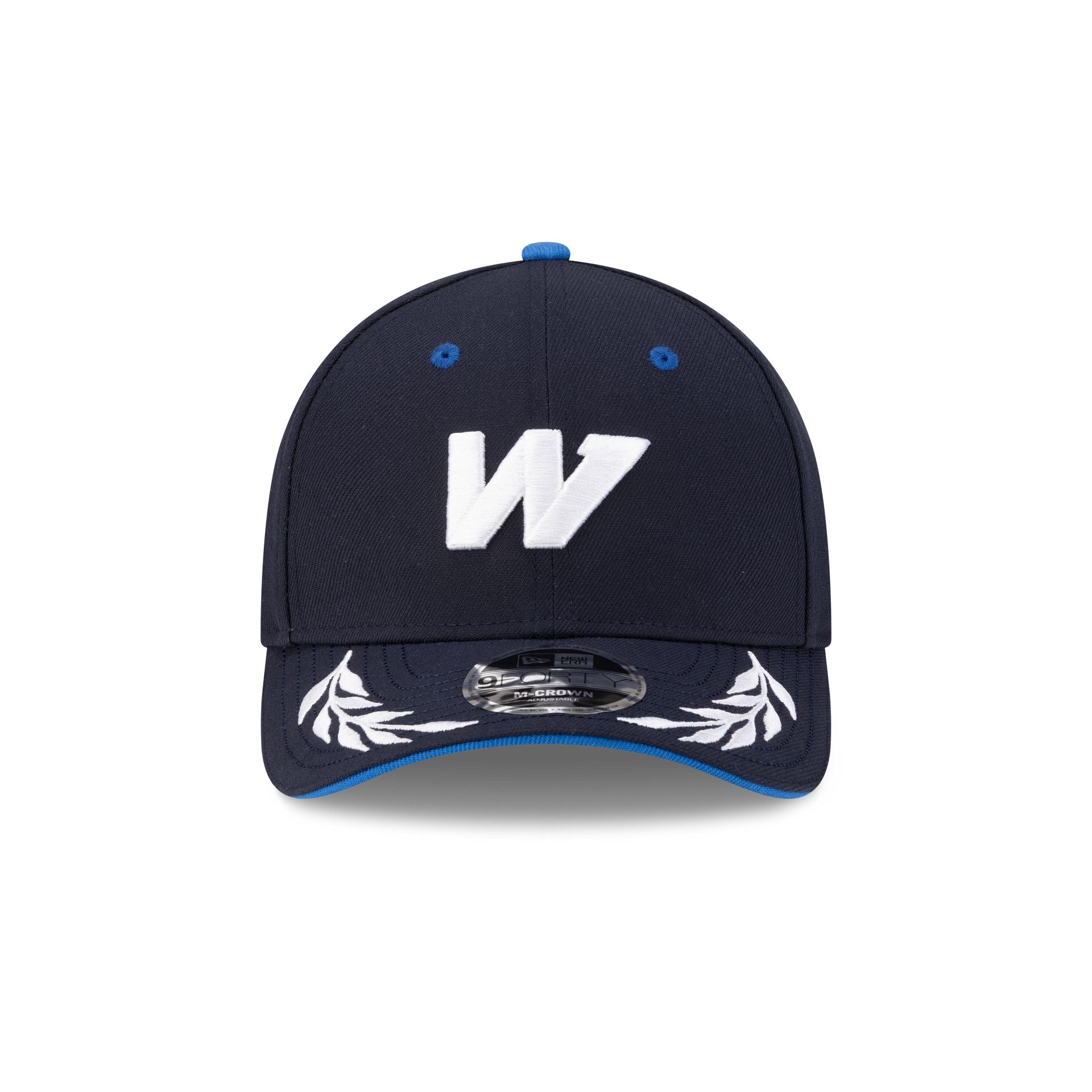 The Atlassian Williams F1 Team 9FORTY M-Crown Snapback features an embroidered team logo at the front panels with a team wordmark and established date at the snapback closure at the rear. Additional details include a New Era Flag at the left-wear side with a list of team World Championship years at the right-wear side, ornamental stitched details at the visor, and a blue undervisor.
