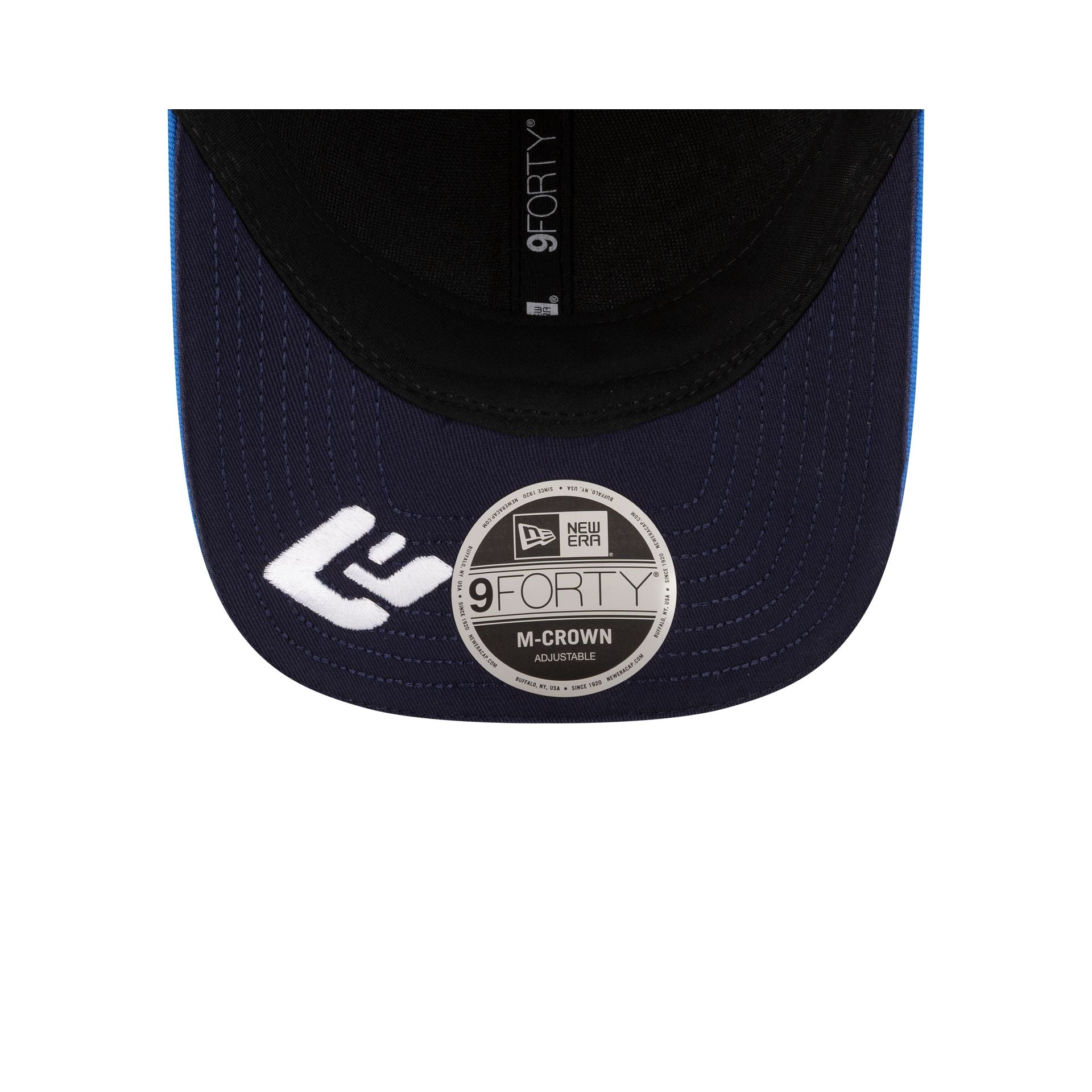 The Atlassian Williams F1 Team Alex Albon 9FORTY M-Crown Snapback features an embroidered team wordmark at the front panels with a New Era Flag at the left-wear side and an adjustable snapback closure at the rear. Additional details include sponsors logos and team color piping details throughout the cap with the driver's number at the visor and an AA23 logo at a navy undervisor.