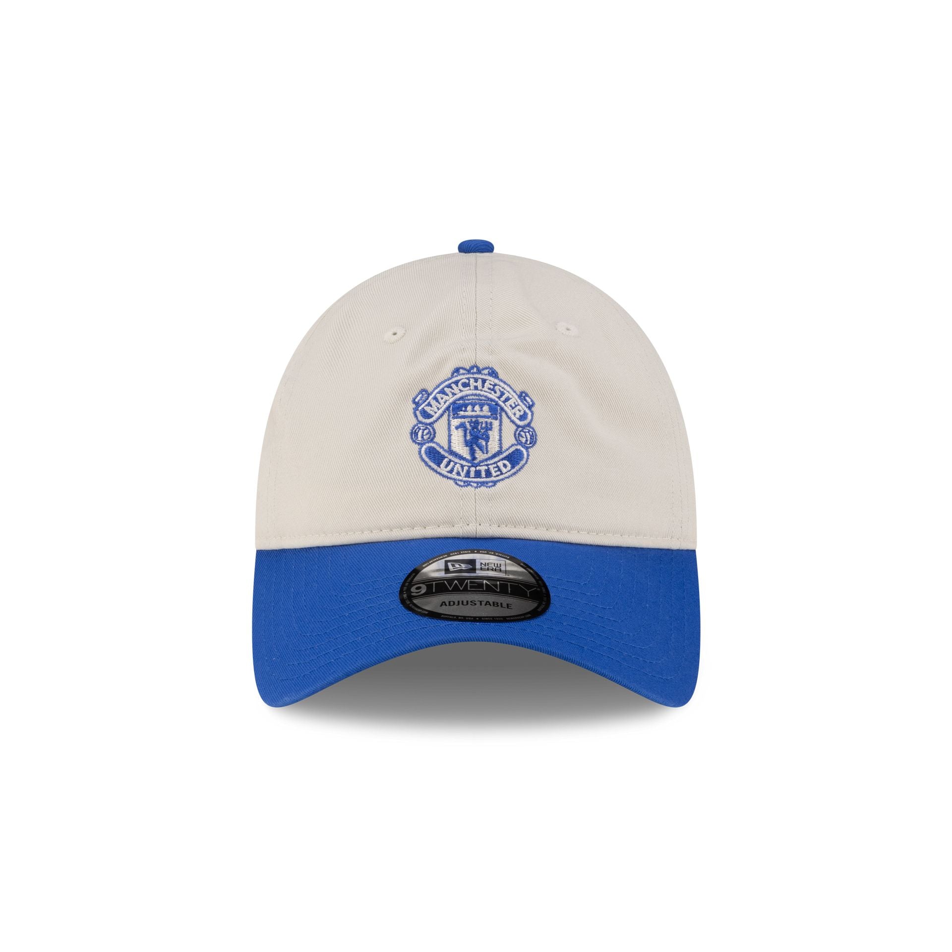 The Manchester United FC Seasonal Stone 9TWENTY Adjustable Cap features an embroidered Manchester United logo at the front panels with an adjustable D-Ring closure at the rear and a blue undervisor.