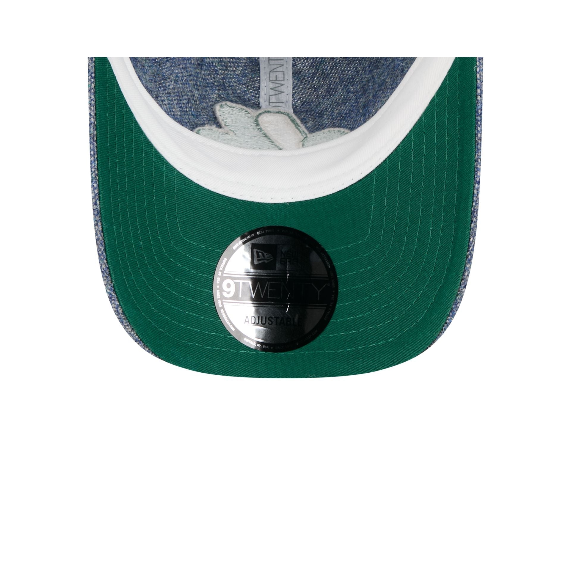 The Montreal Expos Light Royal Shetland Moon 9TWENTY Adjustable Cap features an embroidered Expos Cooperstown logo at the front panels with a Shetland Moon fabrication throughout and a satin Moon tag woven to the right-wear side. Additional details include an adjustable D-Ring closure at the rear and a green undervisor.