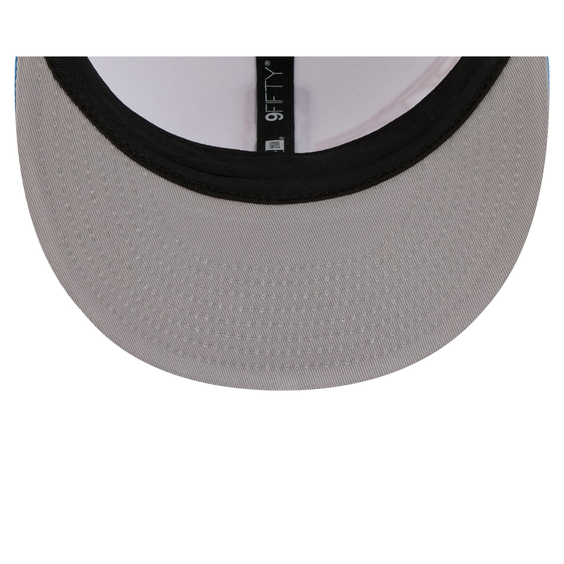 The NBA 2026 All-Star Game Brushstroke 9FIFTY Snapback features an embroidered NBA All-Star Game with wordmark with brushstroke at the right-wear side. Additional details include the NBA Logoman at the front panels with an adjustable snapback closure at the rear and a gray undervisor.