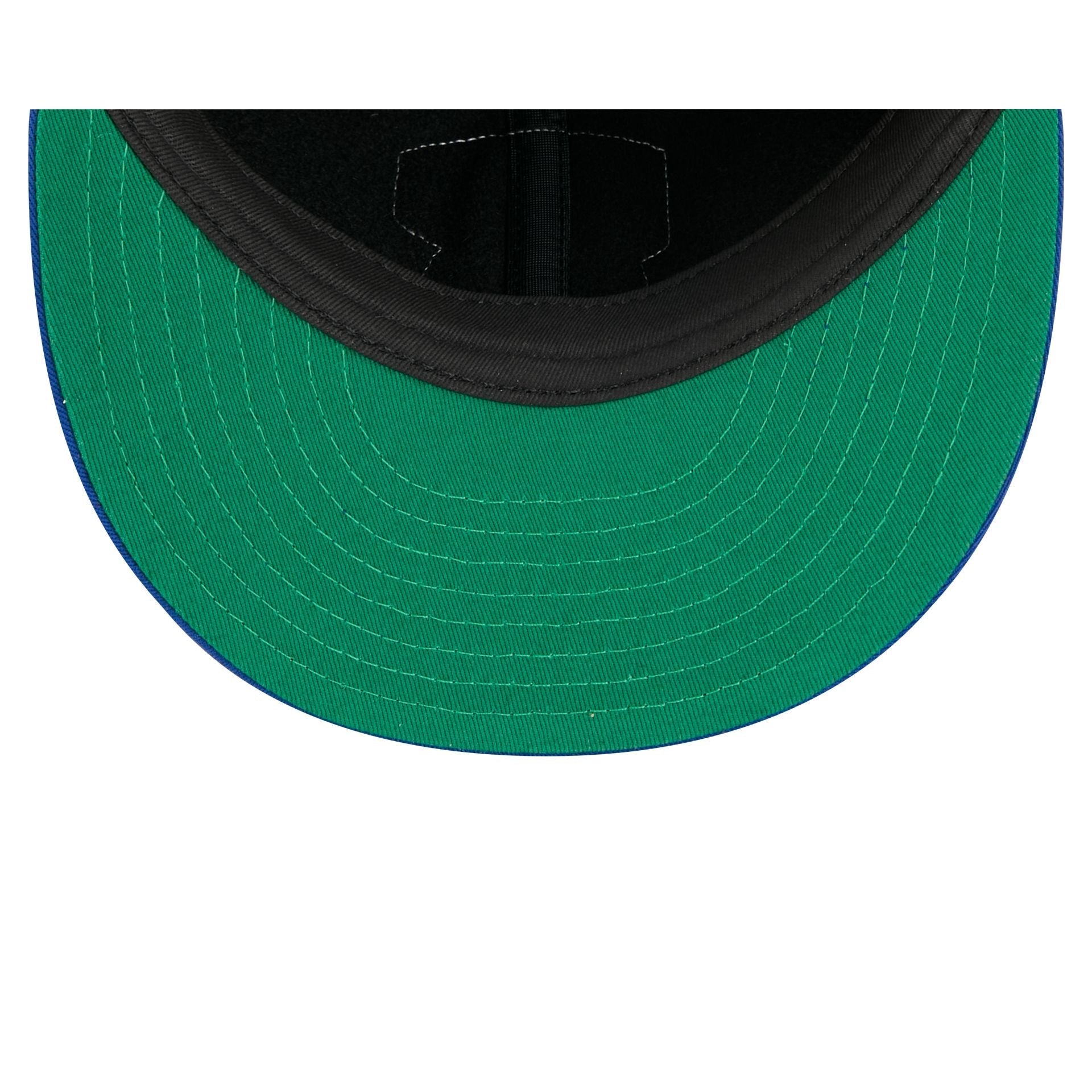 The New York Knicks Felt Logo Retro Crown 59FIFTY Fitted Cap features an embroidered Knicks Hardwood Classics felt logo at the front panels with the NBA Logoman at the right-wear side. Additional details include a team color piping at the crown and a green undervisor.