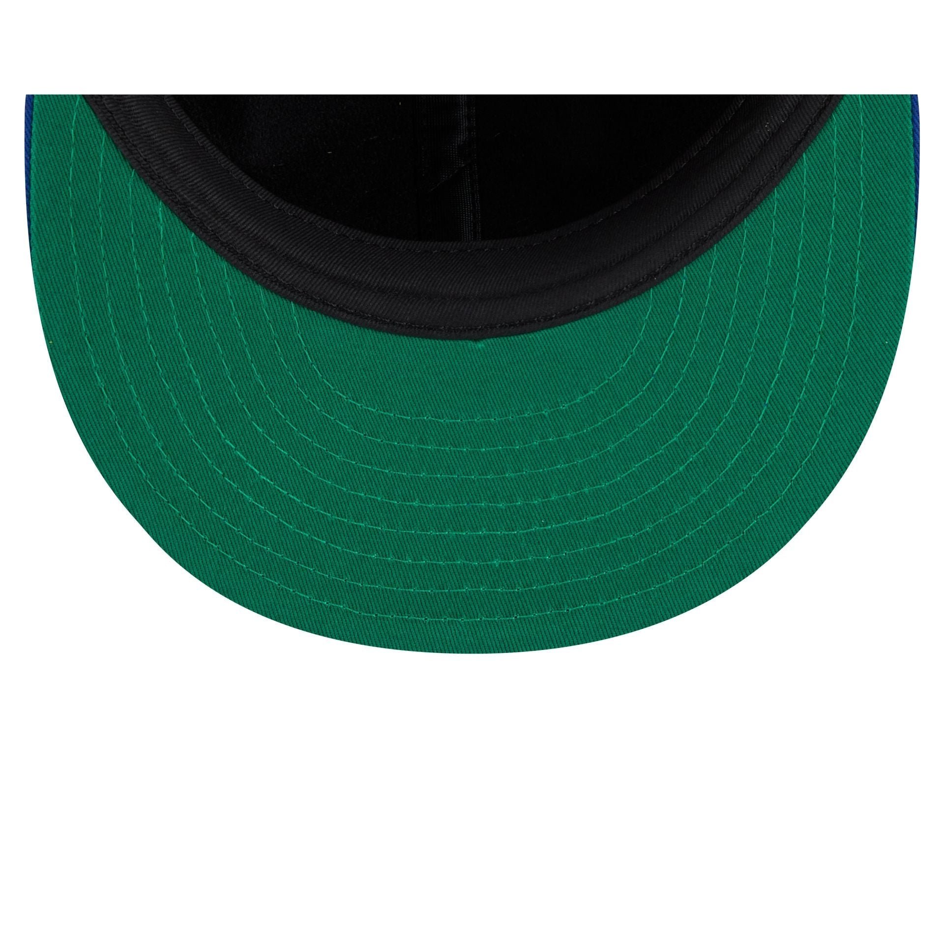 The New York Mets Felt Logo Retro Crown 59FIFTY Fitted Cap features an embroidered Mets felt logo at the front panels with the MLB Batterman logo at the rear. Additional details include a team color piping at the crown and a green undervisor.