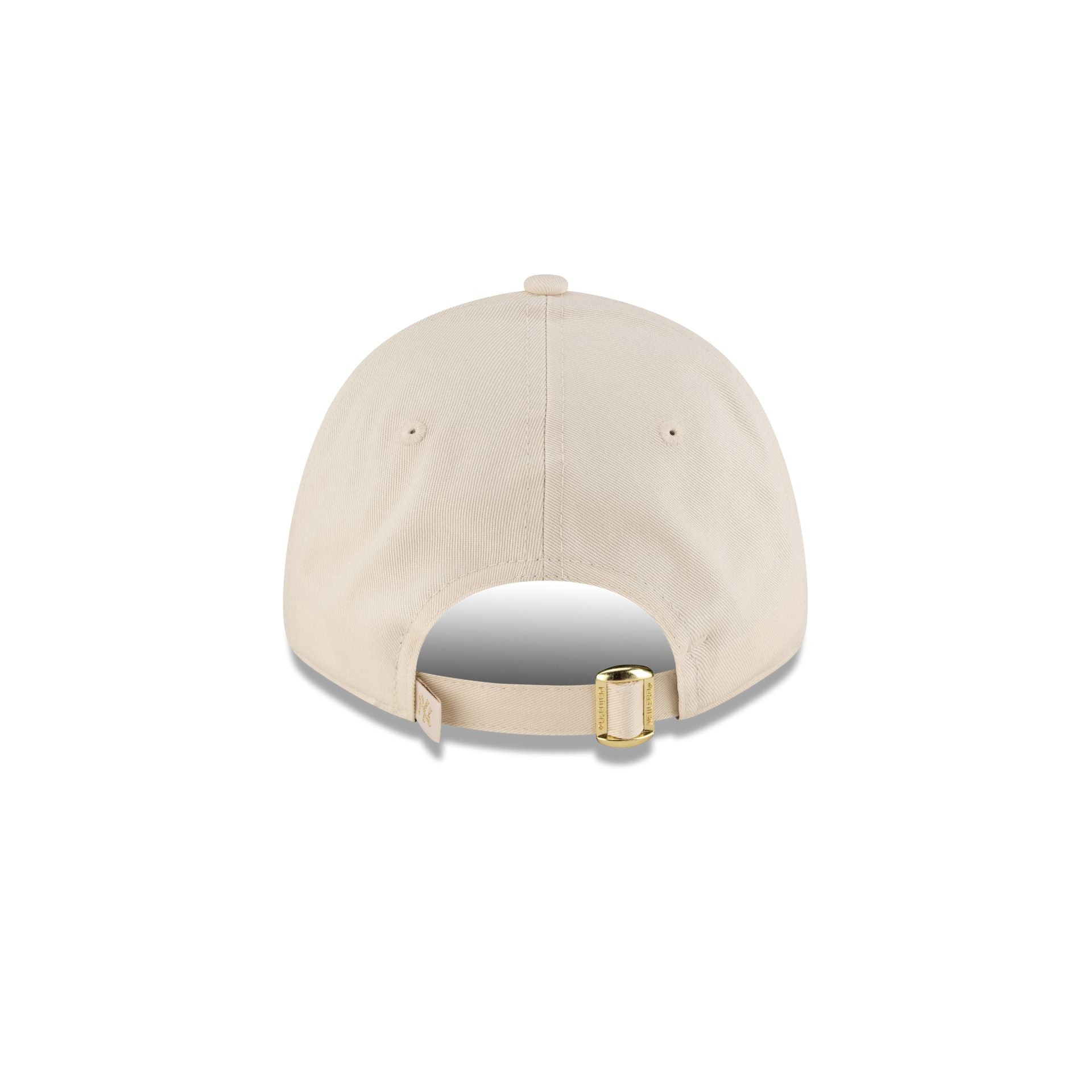 The New York Yankees Sequin Wordmark Women's 9FORTY Adjustable Cap features a stitched sequin Yankees wordmark at the front panels with an adjustable D-Ring closure at the rear.