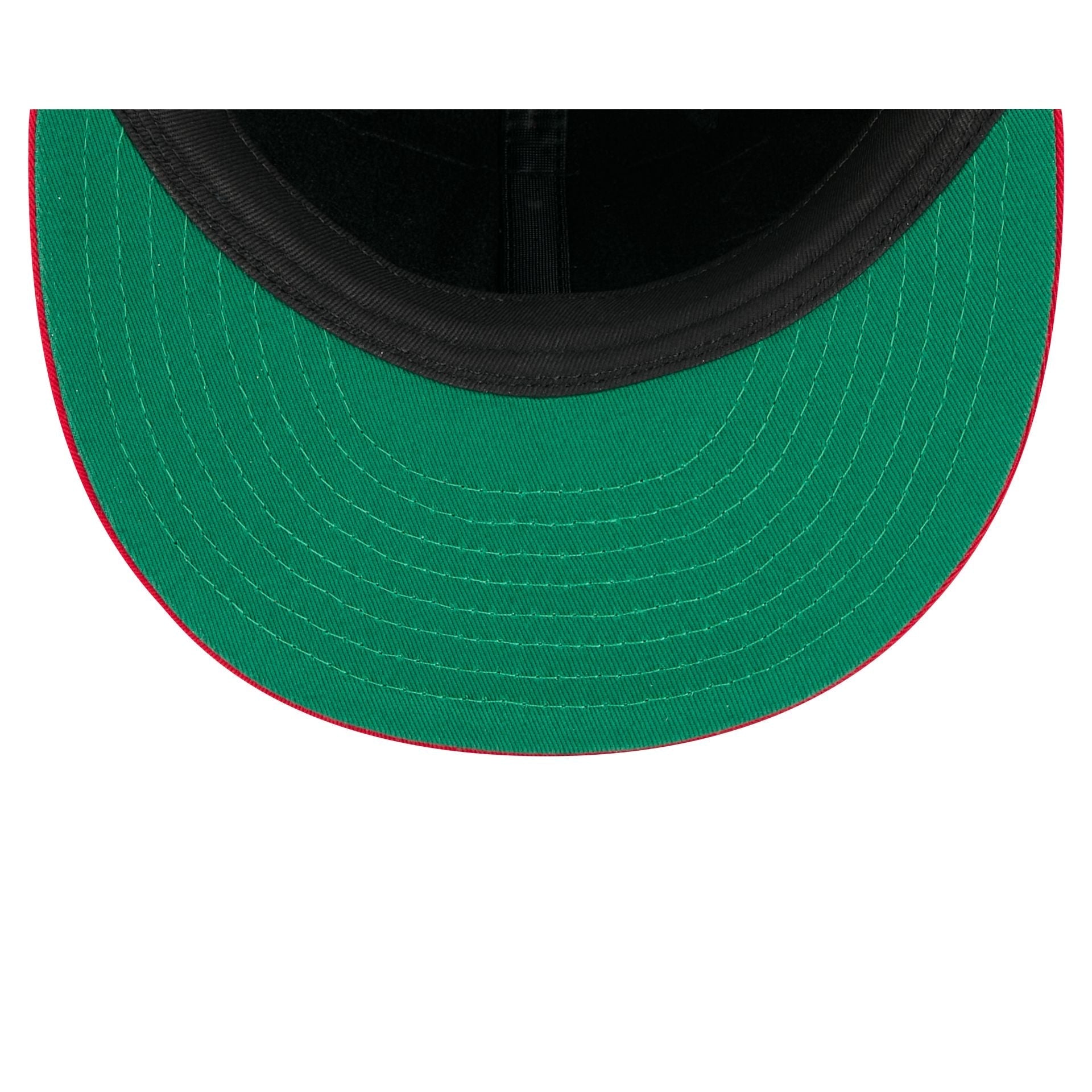 The Philadelphia 76ers Felt Logo Retro Crown 59FIFTY Fitted Cap features an embroidered 76ers Hardwood Classics felt logo at the front panels with the NBA Logoman at the right-wear side. Additional details include a team color piping at the crown and a green undervisor.