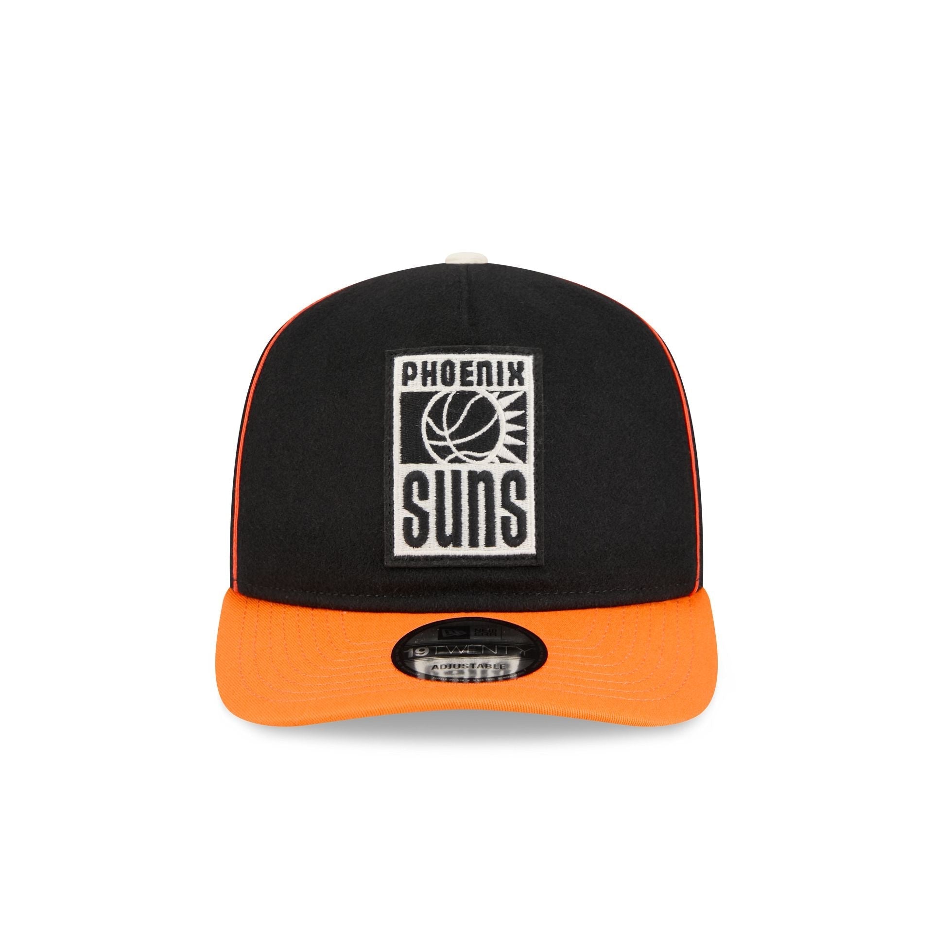 The Phoenix Suns Felt Logo 19TWENTY Adjustable Cap features an embroidered Suns Hardwood Classics felt logo at the front felt panels with the NBA Logoman at the right-wear side. Additional details include an adjustable snapback closure at the rear and a green undervisor.