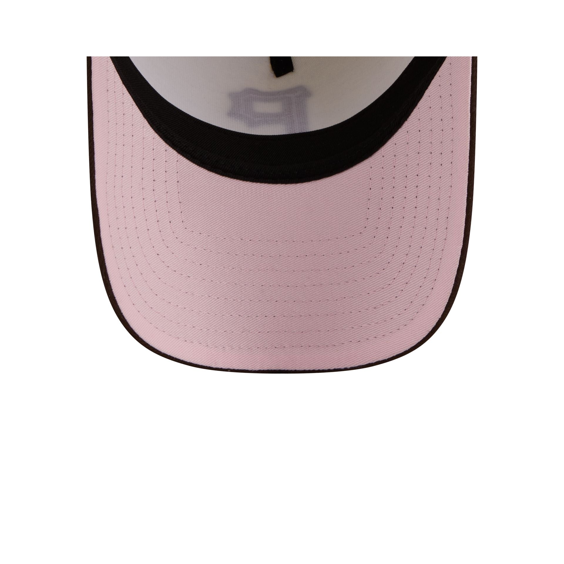 The Pittsburgh Pirates City Script 9FORTY A-Frame Snapback features an embroidered Pirates logo at the front panels with a city script at the right-wear side. Additional details include an adjustable heart-shaped snapback closure at the rear and a pink undervisor.