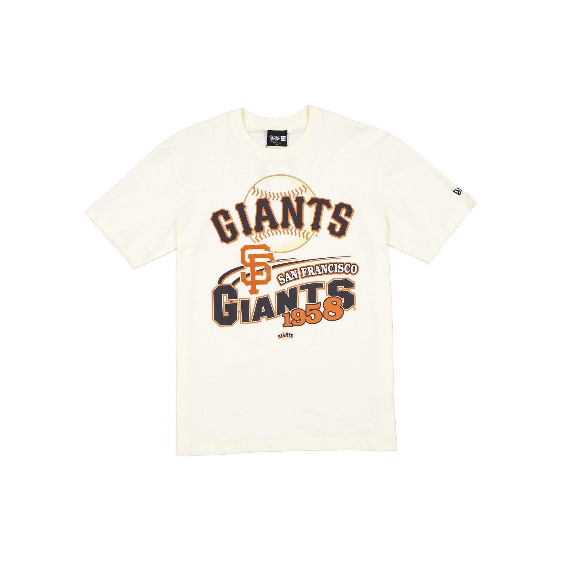 The San Francisco Giants Retro Chrome White T-Shirt features an embroidered Giants logo and a screen-printed retro graphic at the front.