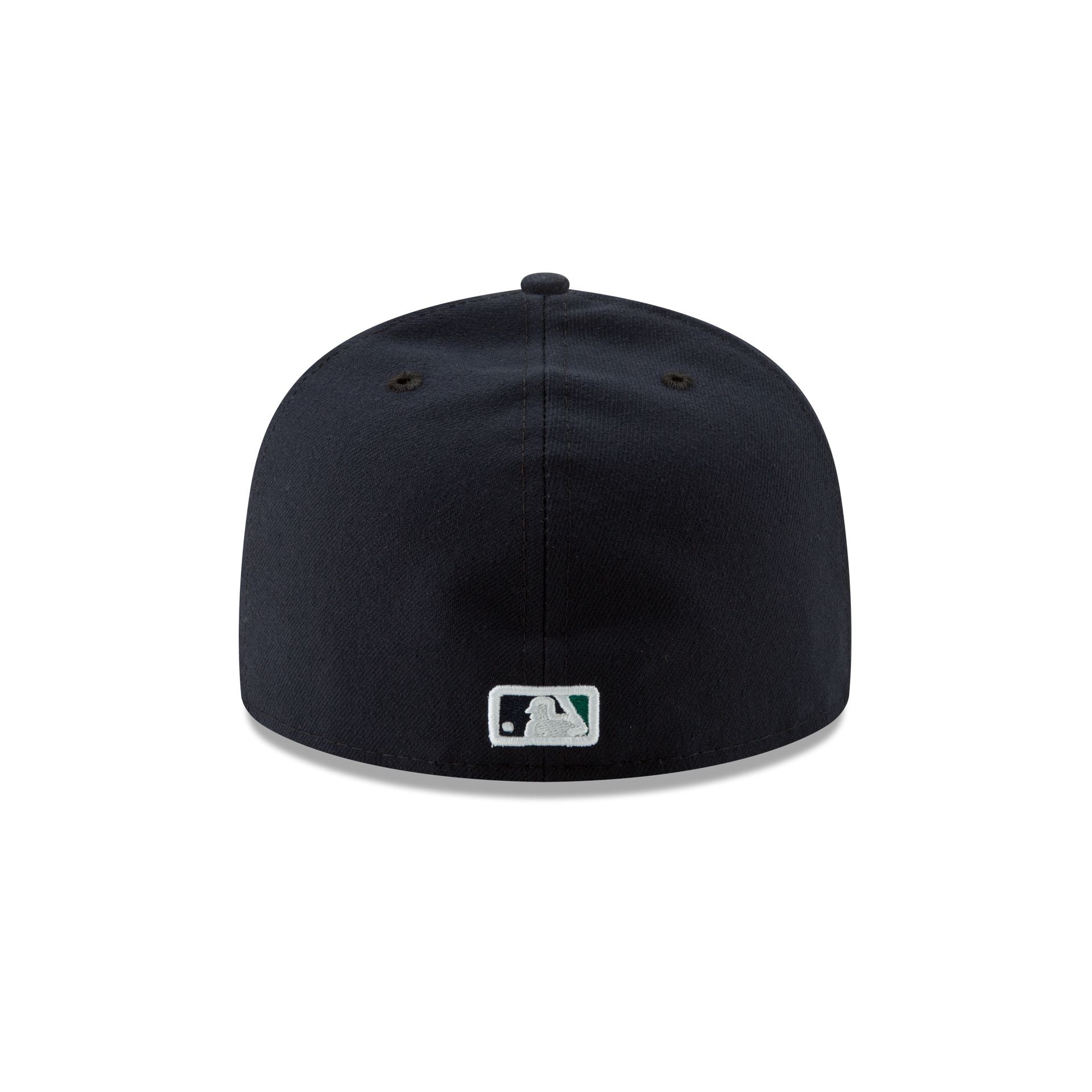 The Seattle Mariners 50th Anniversary Navy 59FIFTY Fitted Cap features an embroidered Mariners logo at front panels with a 50th Anniversary patch at the right-wear side and the MLB Batterman logo at the rear.