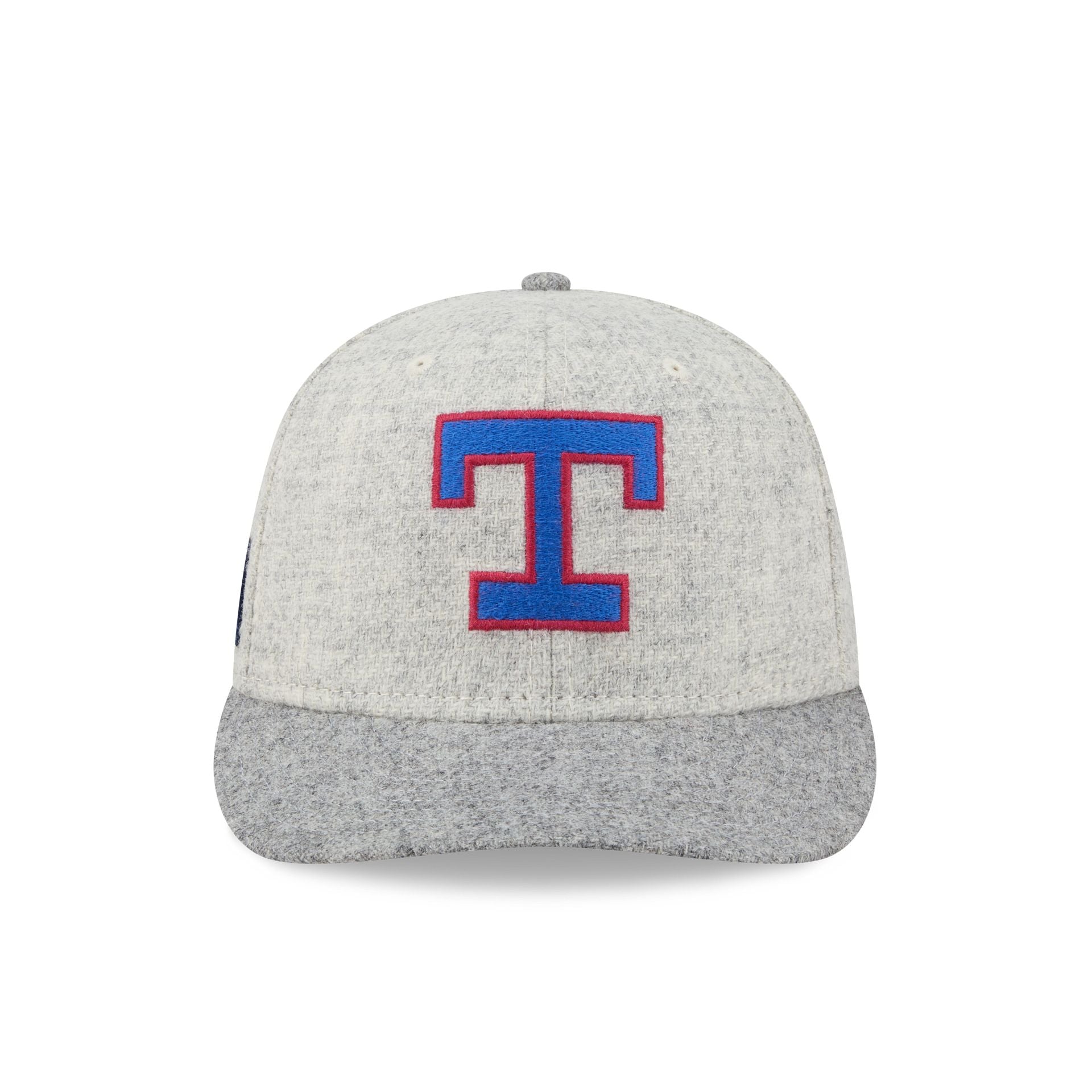 The Texas Rangers Stone Shetland Moon 59FIFTY Fitted Cap features an embroidered Rangers Cooperstown logo at the front panels with a Shetland Moon fabrication throughout and a satin Moon tag woven to the right-wear side. Additional details include a team color sweatband, the MLB Batterman logo at the rear, and a gray undervisor. This cap comes with a pre-curved visor.