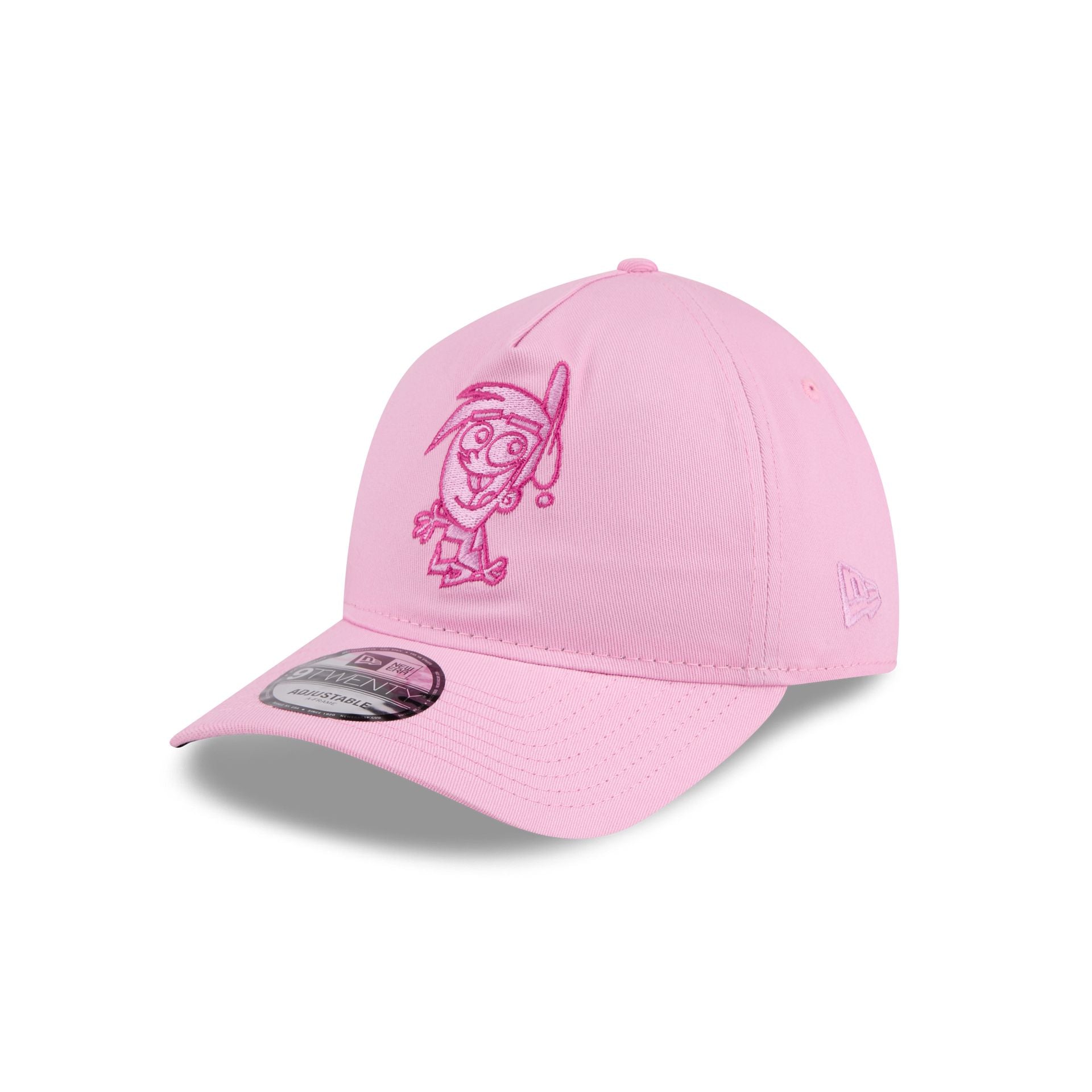 The Fairly OddParents Timmy Turner 9TWENTY A-Frame Adjustable Cap features an embroidered The Fairly OddParents Timmy Turner character at the front panels with a logo at the right-wear side. Additional details include an adjustable D-Ring closure at the rear and a black undervisor.