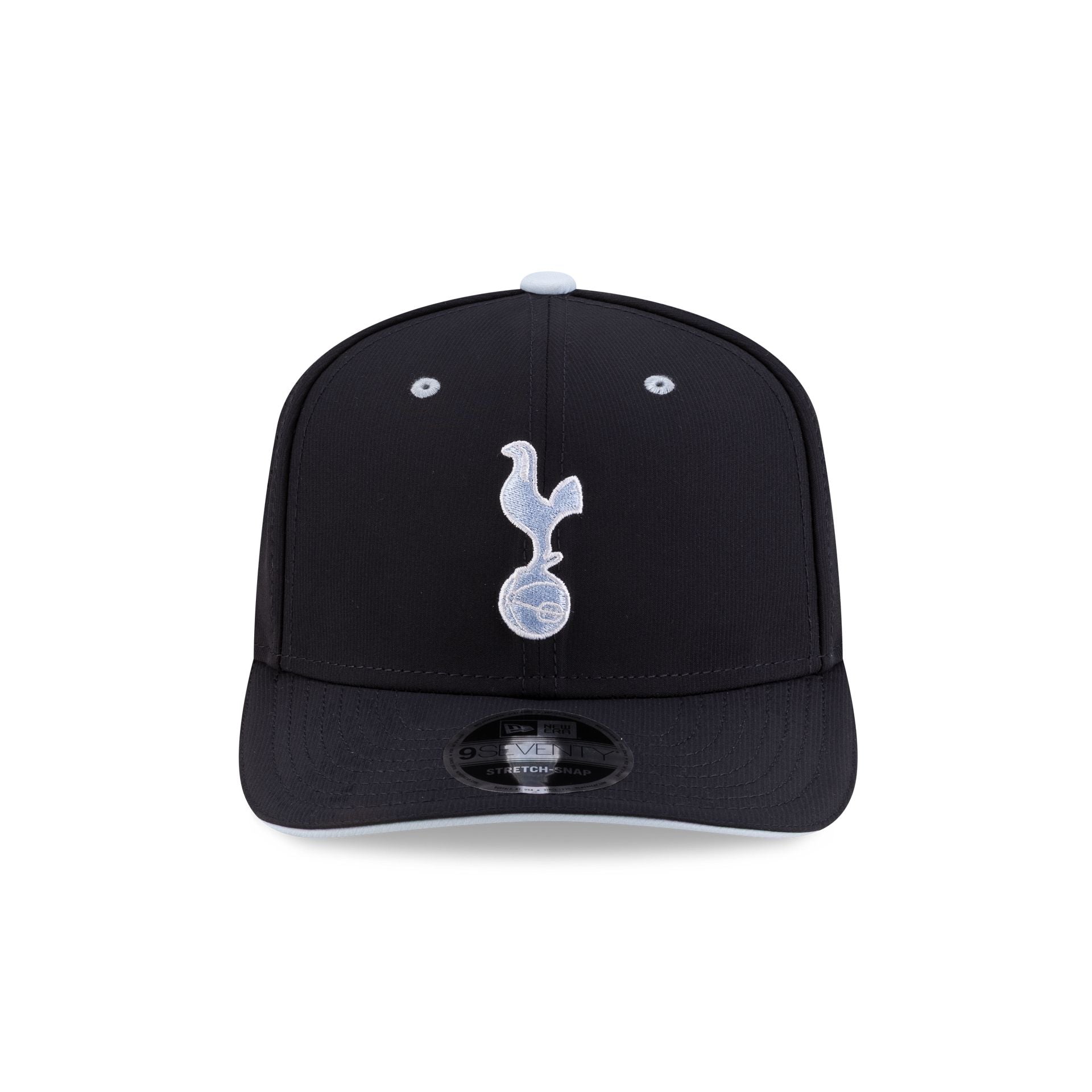 The Tottenham Hotspur FC Cockerel Navy 9SEVENTY Stretch-Snap Cap features an embroidered Tottenham logo at the front panels with an adjustable stretch-snap closure at the rear, laser cut details at the rear panels, and a navy undervisor.